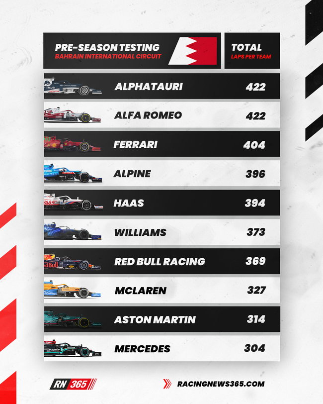 Remarkably, Mercedes completed the least number of kilometres of all ten teams, just 304 laps compared to Alfa Romeo and AlphaTauri who completed 422 rounds of the Bahrain International Circuit.