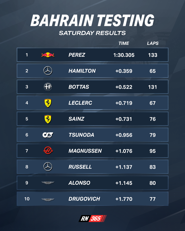 Check out the results from the final day of F1 pre-season testing in Bahrain!
