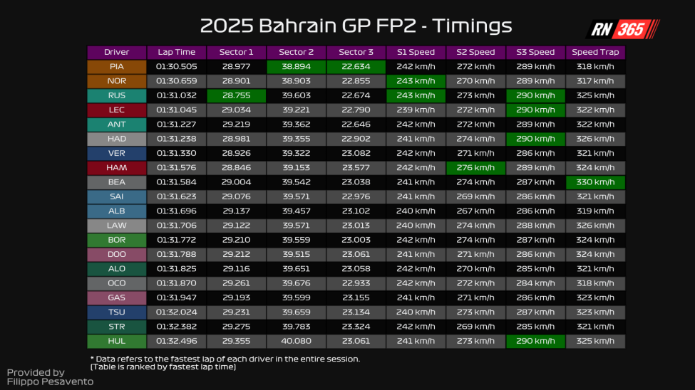 View the lap times from the second free practice session below. The text continues after that.