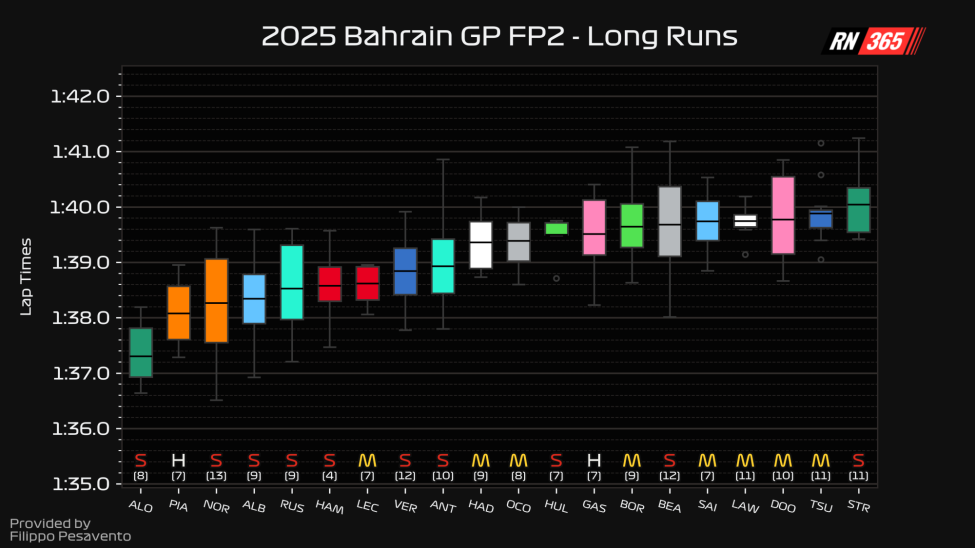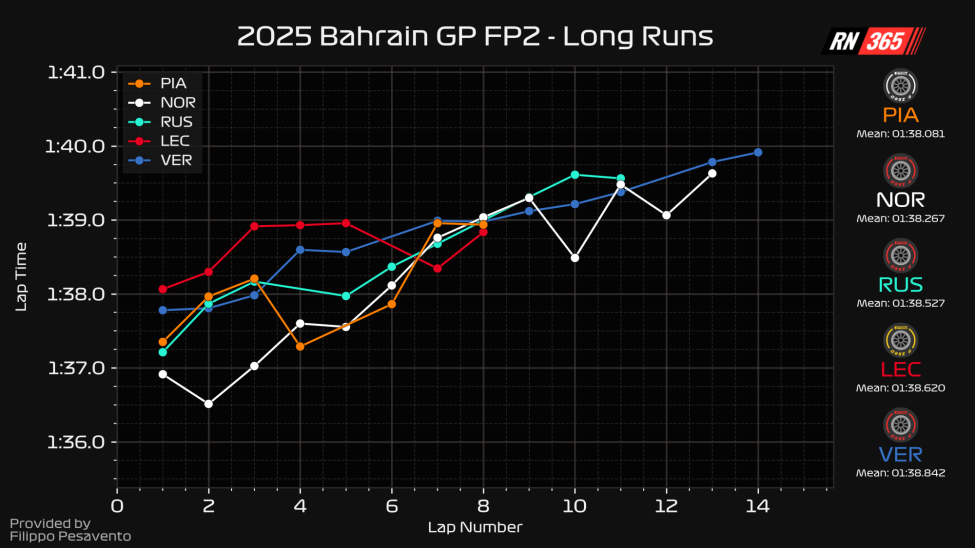 Despite its short run concerns, Verstappen's long run pace has usually been much stronger and in contention with the McLarens - however, that is not the case in Bahrain.