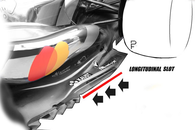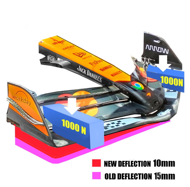 The timing suggests that to comply with the new flexibility tests, the team did not have to radically change the design of the wing from the start of the championship, instead investing resources in the advanced version that arrived two weeks later.