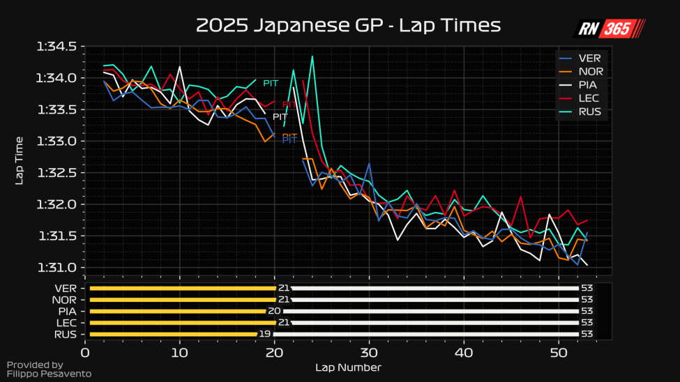 However, without his metronomic consistency to equal Norris' pace, victory would not have been possible. In avoiding significant peaks, Verstappen put together a sustainable roadmap to the win across the race's duration, which is best shown in the race pace data.
