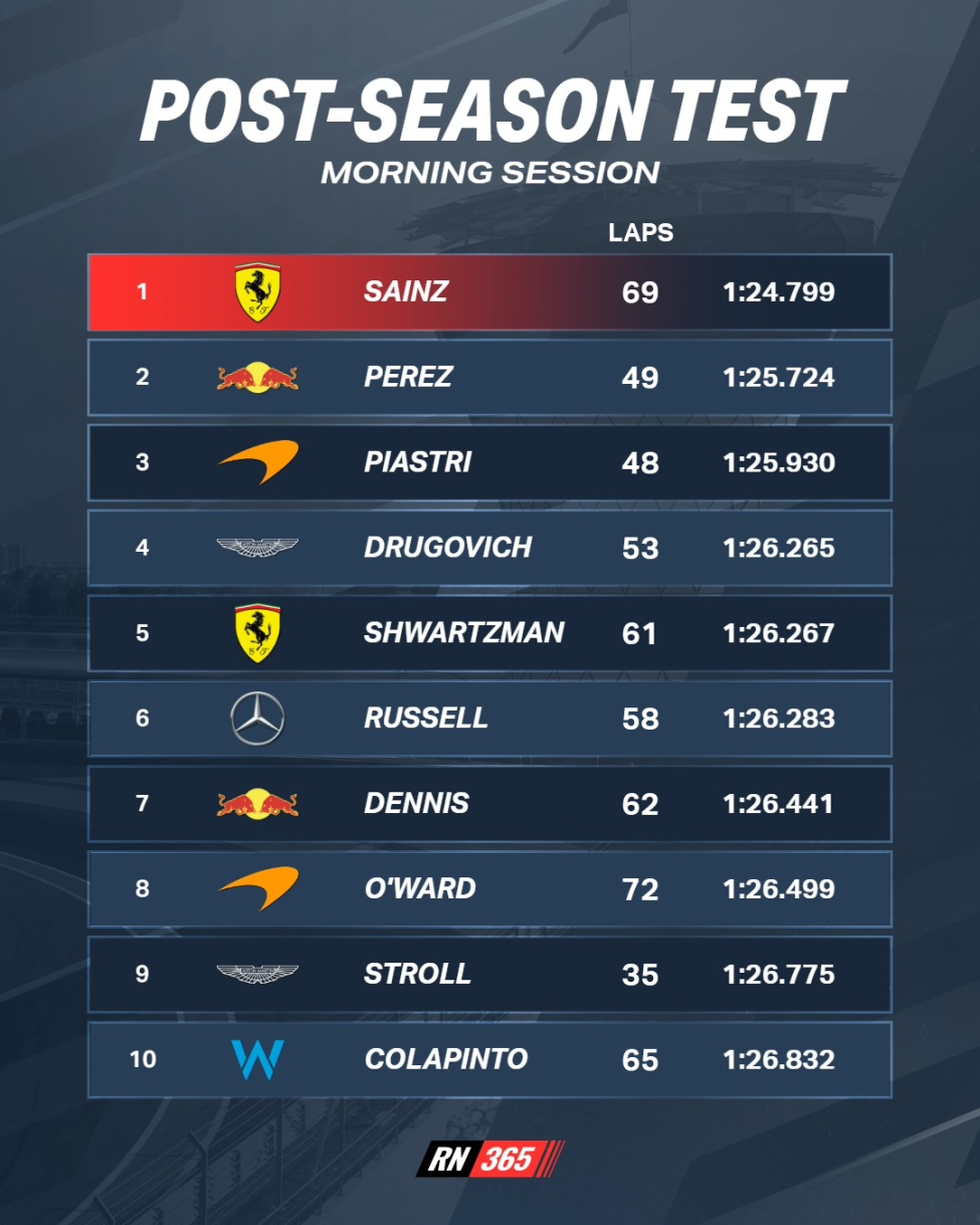 Carlos Sainz ended the opening morning of post-season Formula 1 testing as the fastest driver from Abu Dhabi.