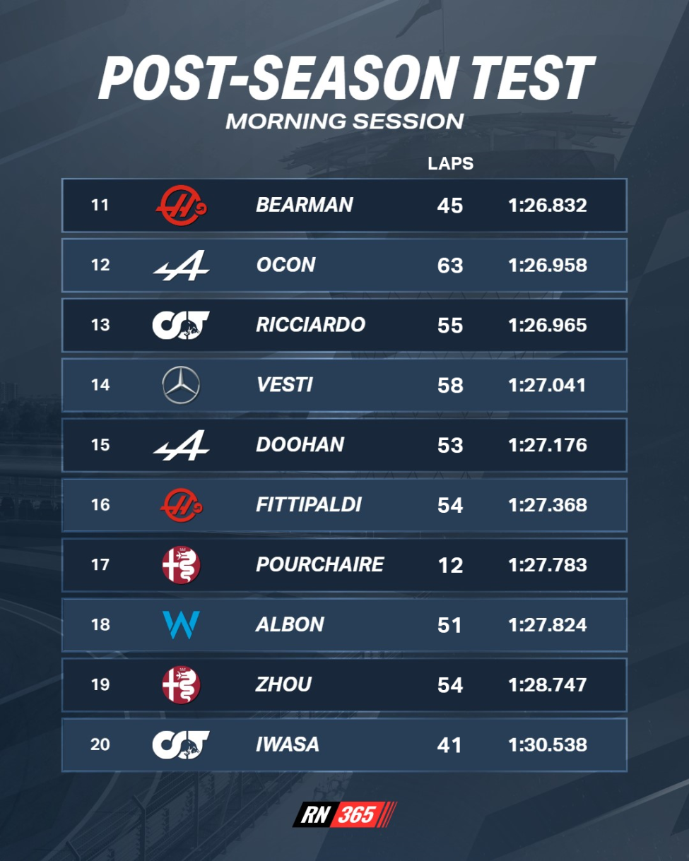 Japanese driver Ayumu Iwasa also made his F1 test debut, jumping behind the wheel of the AlphaTauri and setting 41 laps during the opening morning - the fewest of any driver.