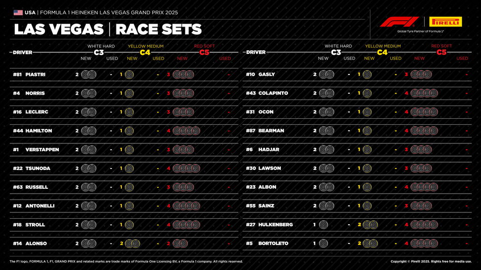 That draws Pirelli's three dry-tyre compounds firmly back into the equation when it comes to planning how to tackle the Las Vegas Grand Prix circuit.