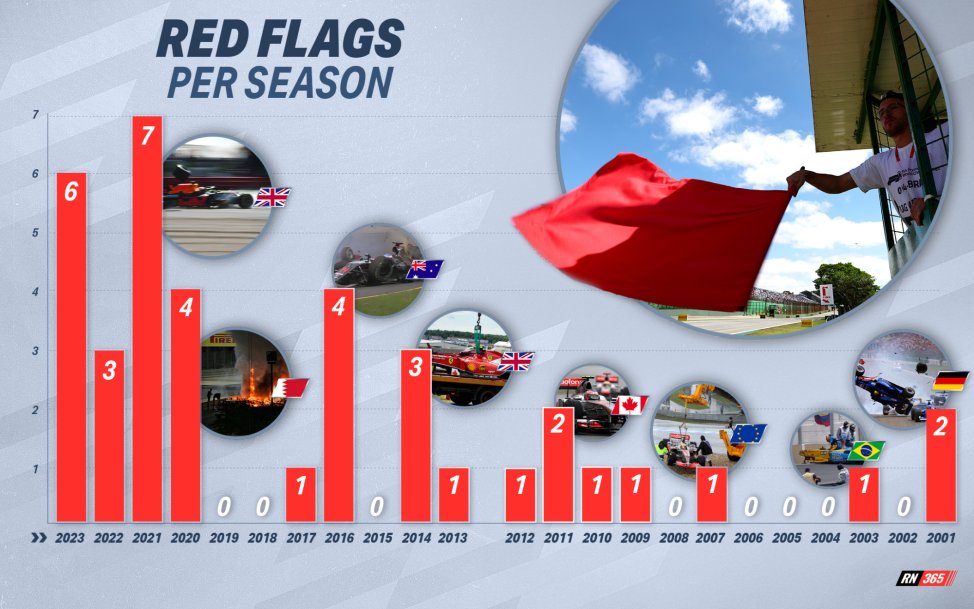 Red flags have been used a lot more liberally in the last four years compared to previous seasons, with 20 race stoppages occurring since 2020.