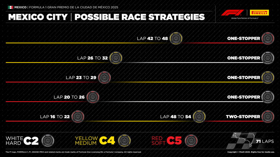 Tyre supplier Pirelli has indicated there are more than the usual number of options available to the teams for the 71-lap race at the Autodromo Hermanos Rodriguez.