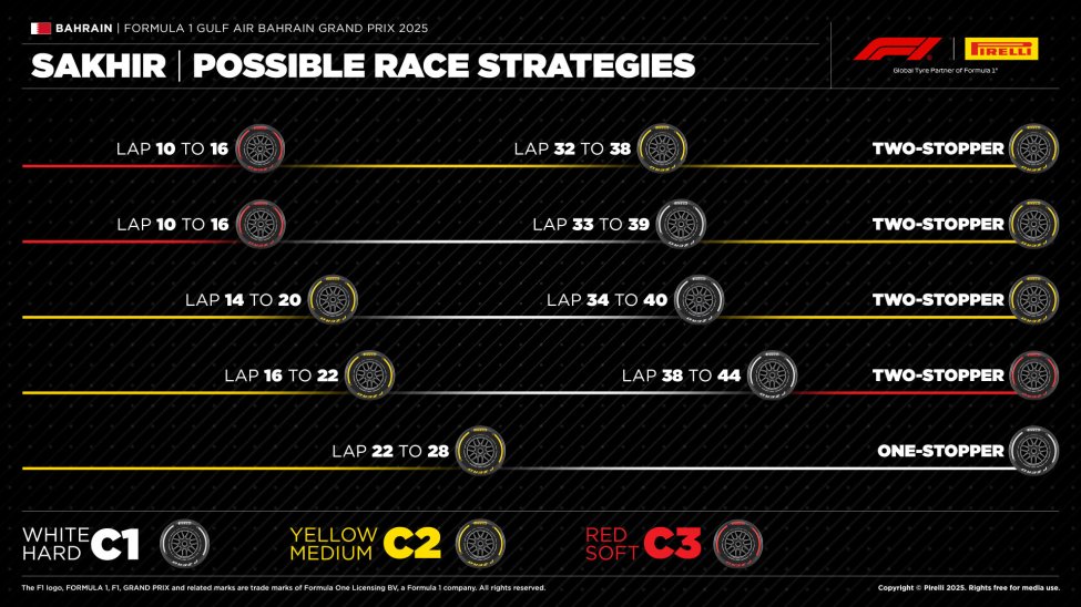 The hot air temperatures of the Middle East are also a factor the teams must take into account, with Pirelli predicting a two-stop strategy will be the fastest way to complete the 57 laps - but, there are numerous two-stop options, creating a dilemma.