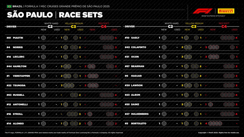 The 10 F1 teams are set for a strategic headache at the São Paulo Grand Prix, with one-stop and two-stop options in play for the 71-lap race.