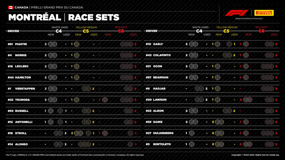 Pirelli has brought the three softest tyre compounds to the race event, including the new-for-2025 C6 compound.