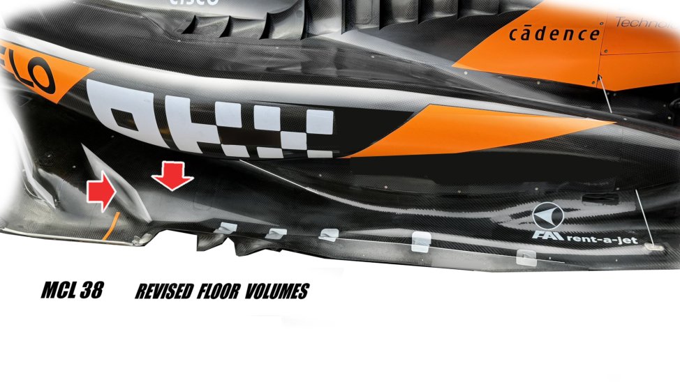 McLaren was the sole leading team to bring a performance upgrade with its floor - where the volume of the lower channels has been increased to allow for different management of the air pressure under the car.
