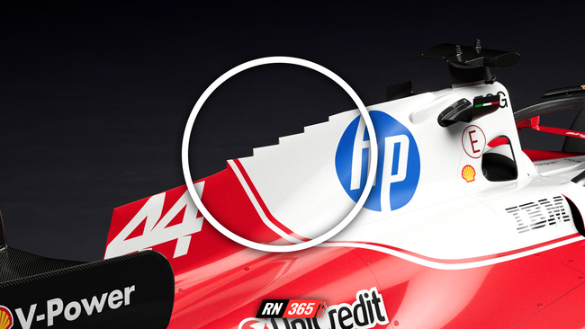 The substantial shark fin adorning the engine cover partially echoes last year's design language whilst incorporating a distinctive saw-tooth profile that breaks new ground for the Italian squad.