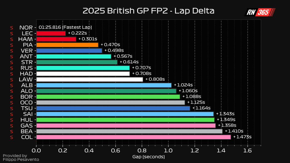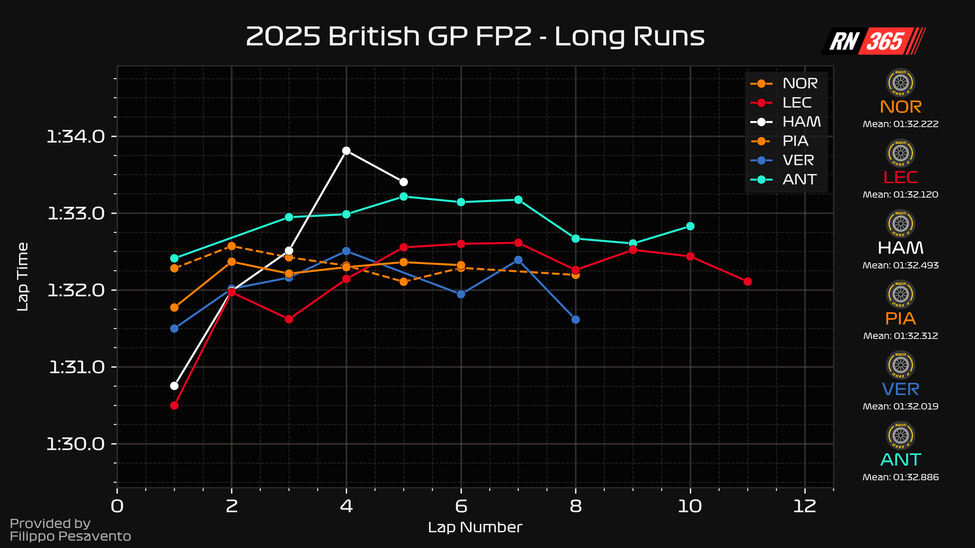 While Norris held an advantage over one lap, it was a different story when it came to the long runs.