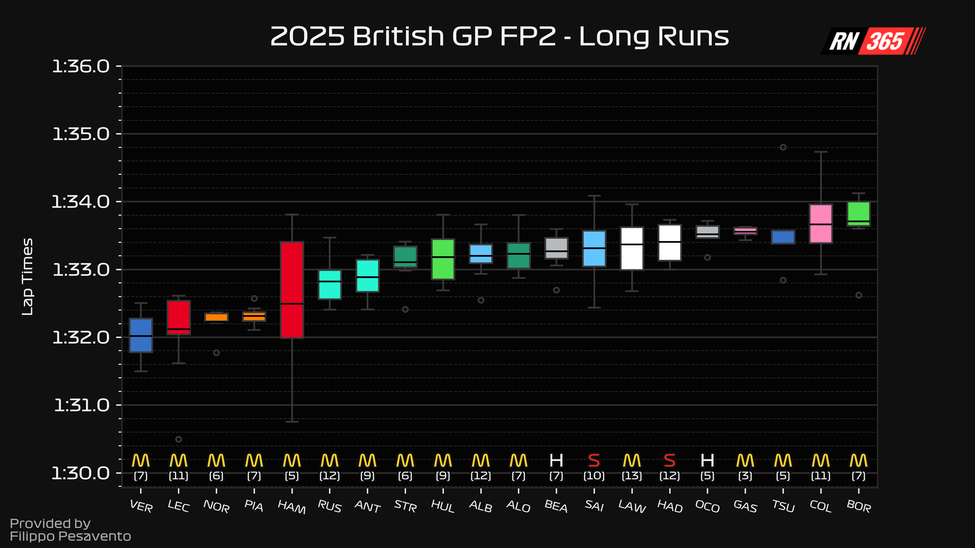 Even more interestingly, however, was Verstappen's pace as his 1:32.019 was the best of the lot - a stark contrast to his performance across a single lap.