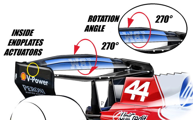 As we explained during testing, when the wing broke cover on Lewis Hamilton's car for five laps, the advantage of a wing like this is that it provides a significant reduction in drag on the straights, which, combined with the aerodynamic lift created, induces a stronger diffuser stall.