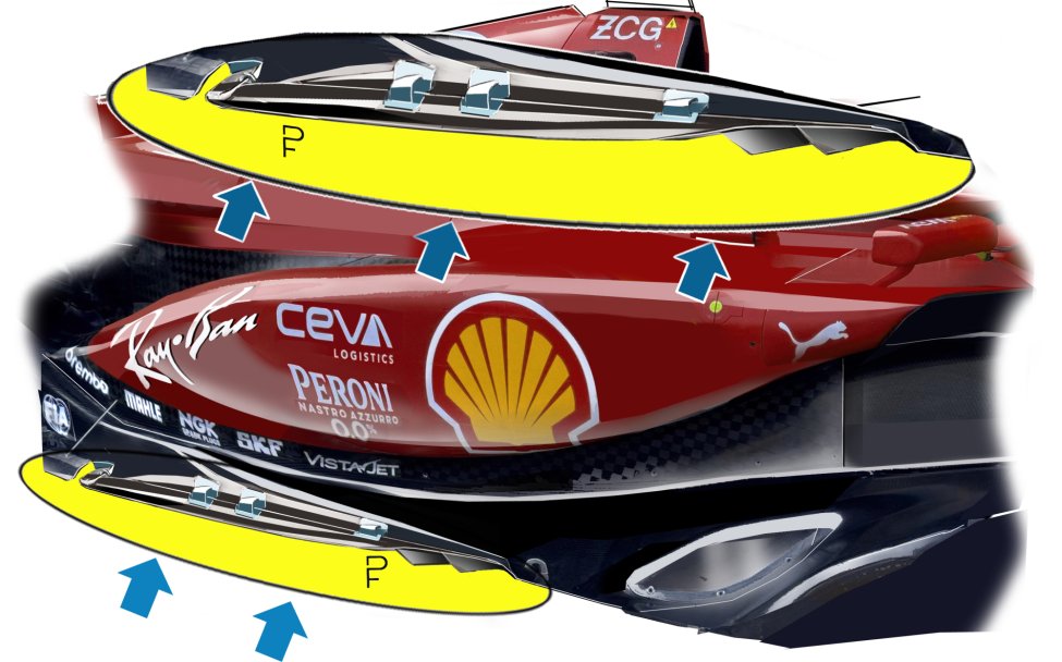 The volumes of the Venturi channels have been profoundly modified, with two key objectives in mind: distribute the downforce generated to create the best aerodynamic balance but also the management of air pressure under the car, to reduce the induction of porpoising at the lower ride heights.