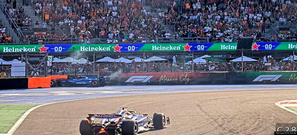 On lap 70 of 71 at the Autodromo Hermanos Rodriguez, Carlos Sainz spun his Williams in the stadium section of the circuit, terminally damaging it in the process.
