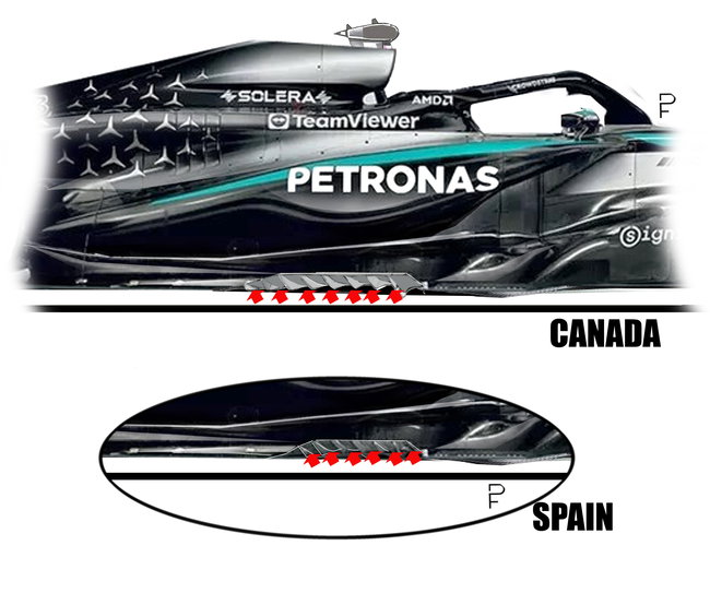 Throughout the season, Mercedes has primarily focused on the car's floor, seeking to enhance both the quantity and distribution of aerodynamic downforce.