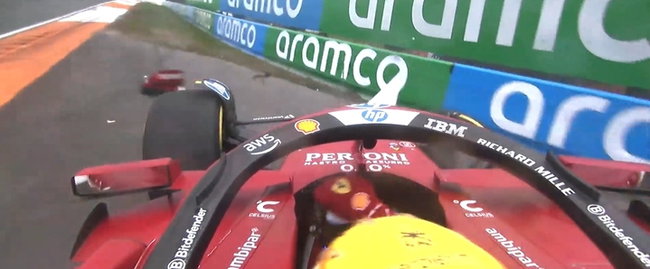Thirty laps later, it was a double DNF for Ferrari as Mercedes' Kimi Antonelli understeered into Charles Leclerc through the Turn 3 banking, sending the Monégasque into a barrier and out of the race.