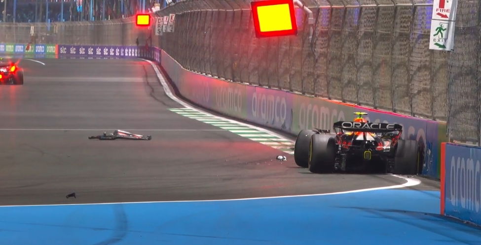 Late in the second practice session, underneath the lights of the Jeddah Corniche Circuit, Tsunoda smashed into the wall at the final corner, heavily damaging the front of the RB21.