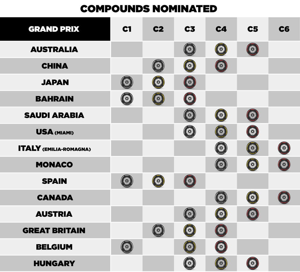 Instead, Pirelli has confirmed that it will take its hardest compound – the C1 – as well as the C3 and C4.