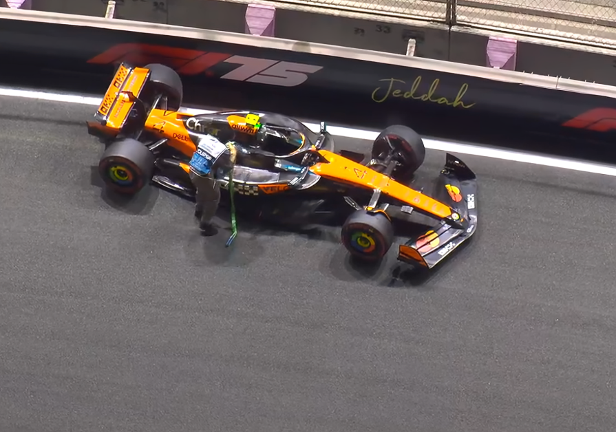 After topping Q2, Norris crashed heavily at Turns 4 and 5 after hitting the kerb, being spat into the outside barrier, causing a red flag.