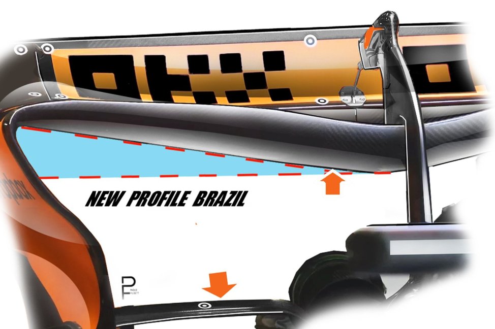 After introducing a revised front wing in Austin, and a new floor in Mexico - available only for Norris - the Woking team has delivered a brand new medium-downforce rear wing to Interlagos.