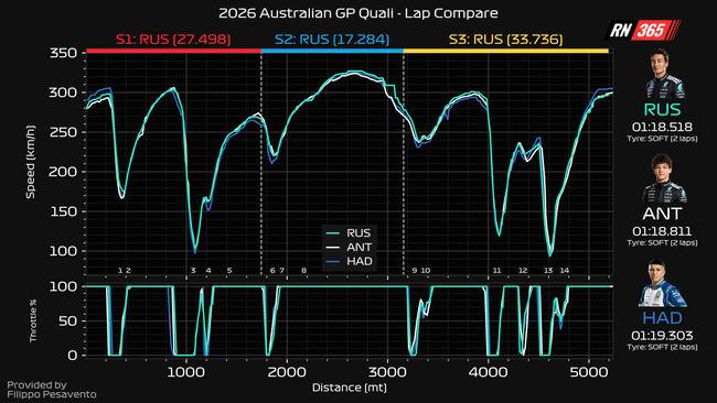 Check out Mercedes and Hadjar's data from Q3 in Australia below.