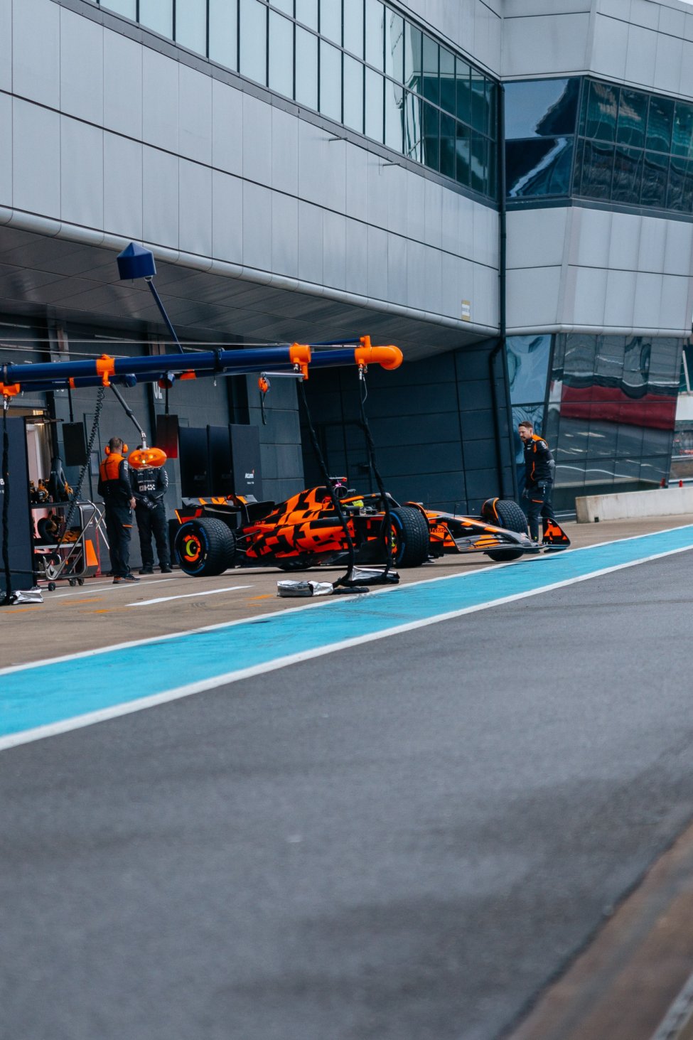 Whilst its official look is to be released next week at F1 75 Live, at the season launch event being held at the O2 in London, McLaren is the first of the 10 F1 teams to get its new car on circuit.