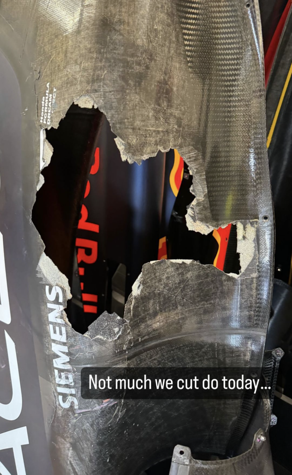 Posting on his Instagram story, Perez showcased the extent of damage dealt to his sidepod.