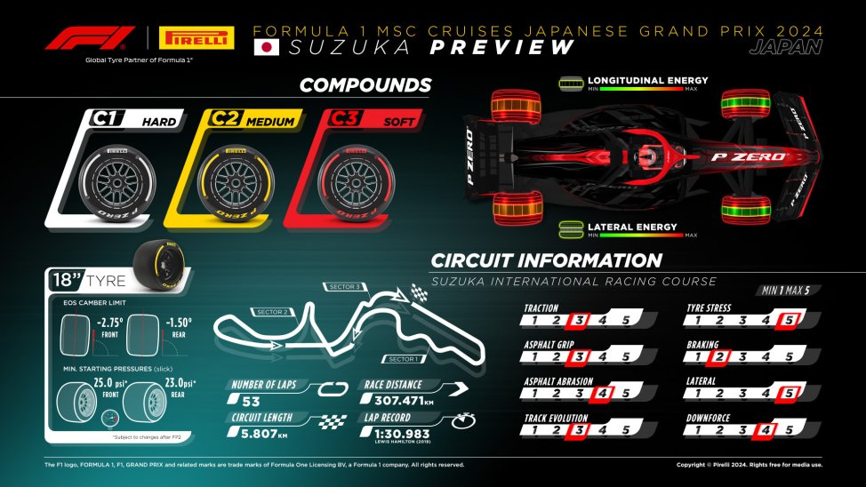 The Italian tyre manufacturer has opted for the C1, C2 and C3 compounds for the upcoming weekend at Suzuka, although rain is forecast.