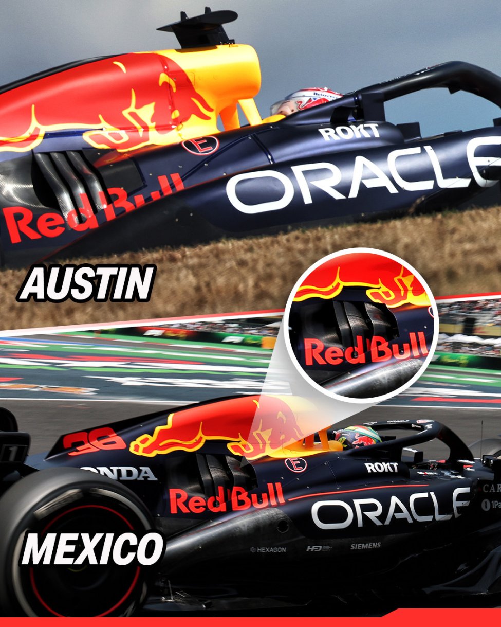 The cooling package comes as part of a suite of changes to the RB21 for the round in Mexico, which includes further alterations to the floor, front braking and edge wing.