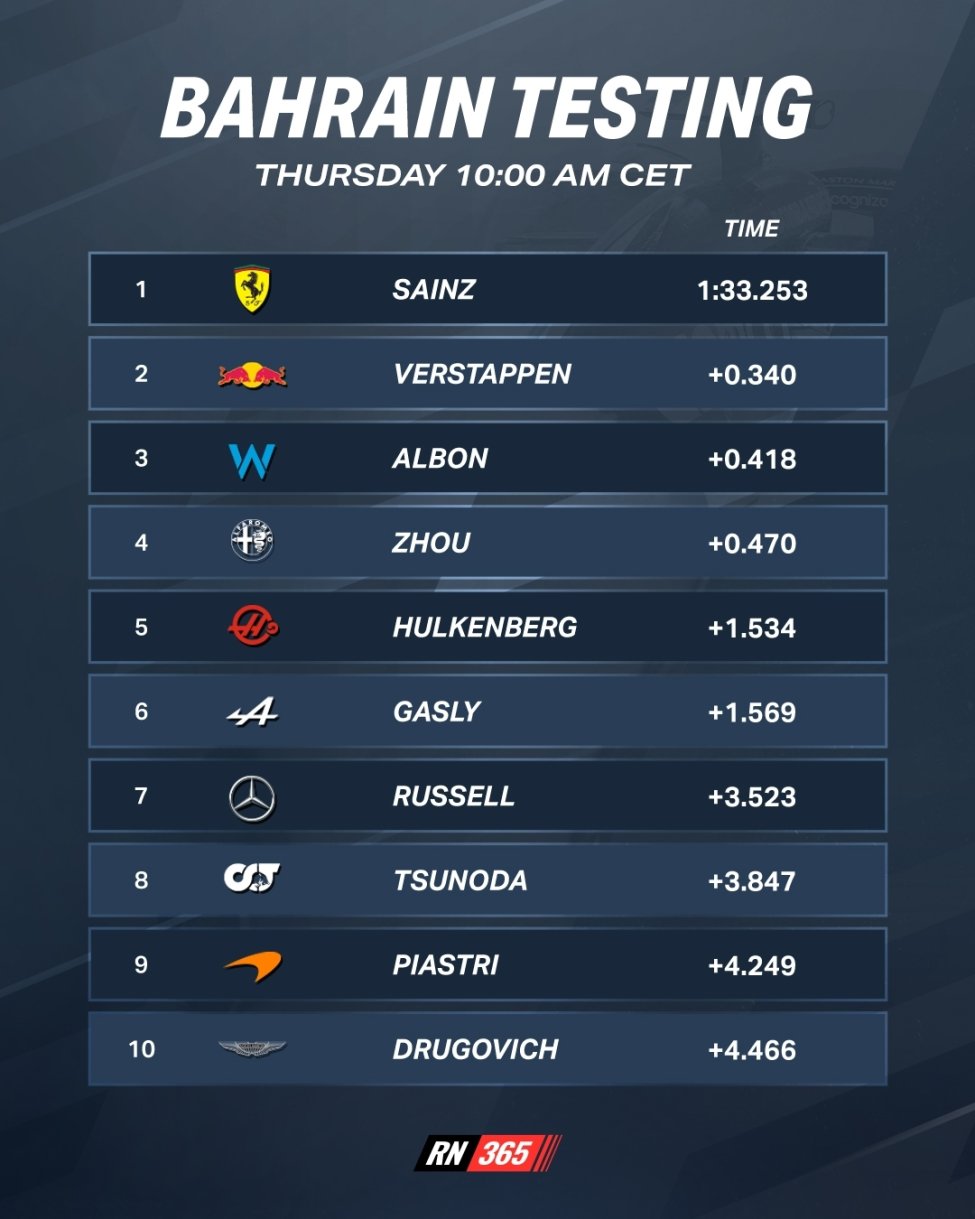Max Verstappen – who showcased the RB19 for the first time – and Carlos Sainz have also been busy while often swapping times at the top of the timesheets.