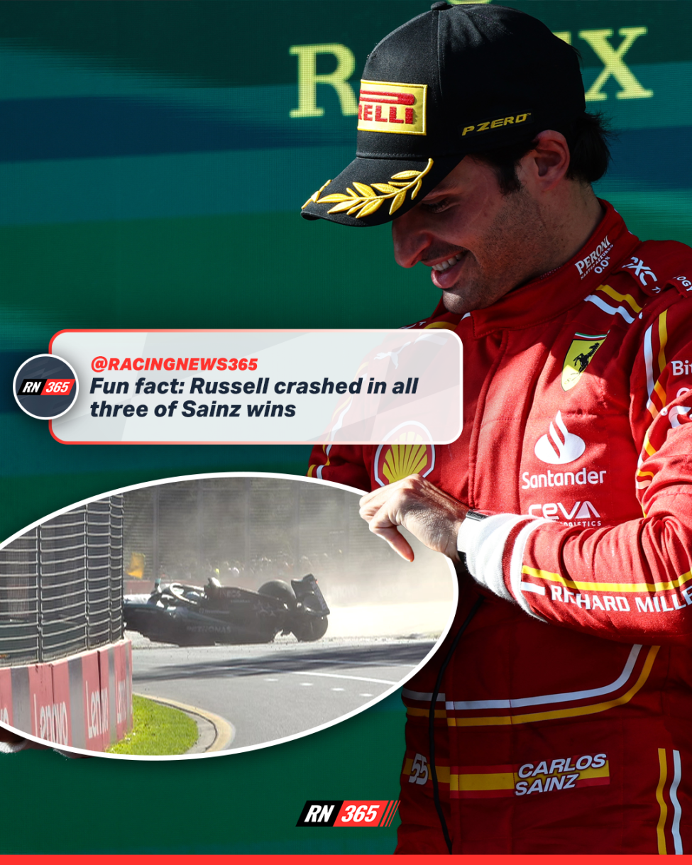 Sainz's second victory was his triumph that ended Max Verstappen's 10-race winning streak last season in Singapore. On that day, Russell crashed on the final lap whilst battling Lando Norris for second.
