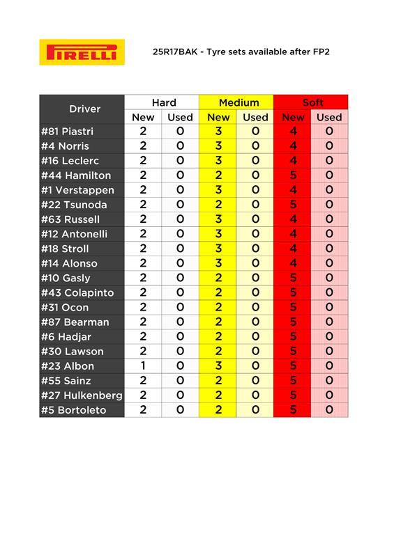 Ferrari and Red Bull were the only top teams to gather significant data on the two softest compounds, as Yuki Tsunoda also drove on the mediums. McLaren was unable to gather as much data as its rivals, due to both Lando Norris and Oscar Piastri both finding the wall.