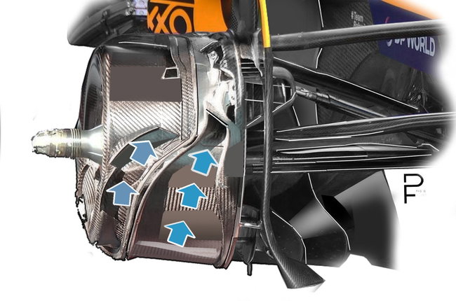 A decisively thorny factor centres around the internal channels inside the brake drums, and any flaps inside them, which, according to the rules, could be regarded as a movable aerodynamic device - and banned under the rules.