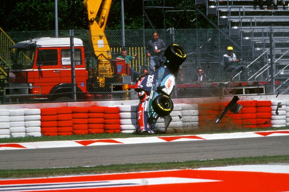 Ratzenberger's front-wing failed on a qualifying lap approaching the Villeneuve kink - the fastest part of the circuit at nearly 200mph, after a kerb strike on his previous lap.