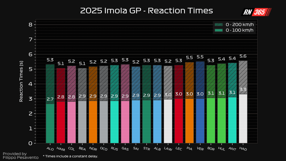 The Dutchman had it all to do in the braking zone. His reaction time from 0 to 100 kilometres per hour was already sub par and from 0 to 200 kilometres per hour, Verstappen was actually one of the slowest drivers in the field. But a similarly slow start for Piastri allowed Verstappen to stay close.