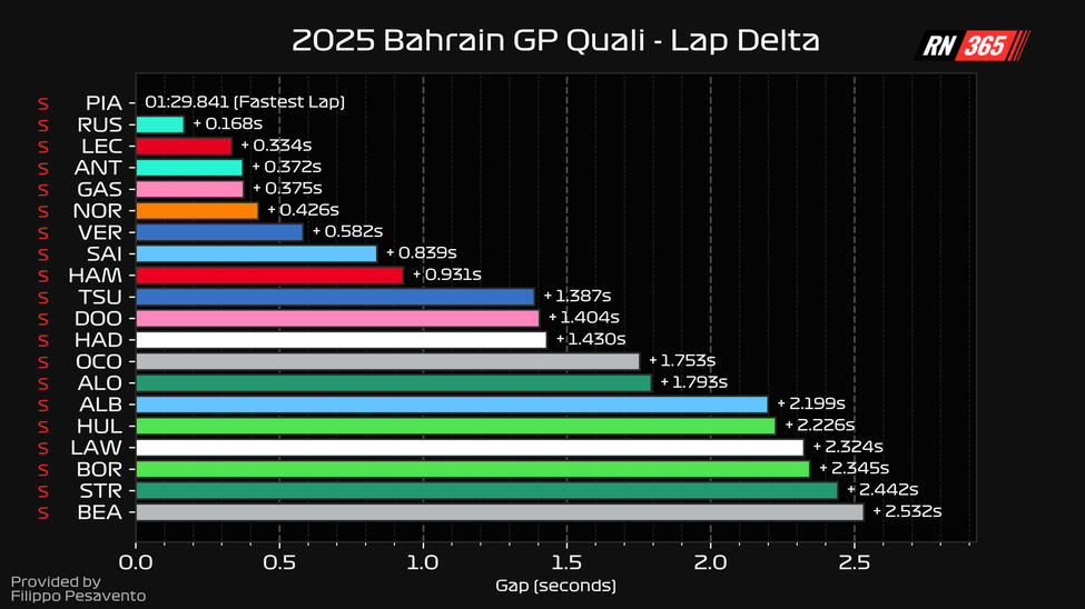 Whether it be top speed or cornering speeds, the package is well off the pace, with the world champion firmly in the middle of the pack for grunt and losing four-tenths alone to Piastri in the middle sector.