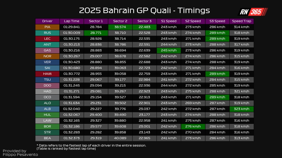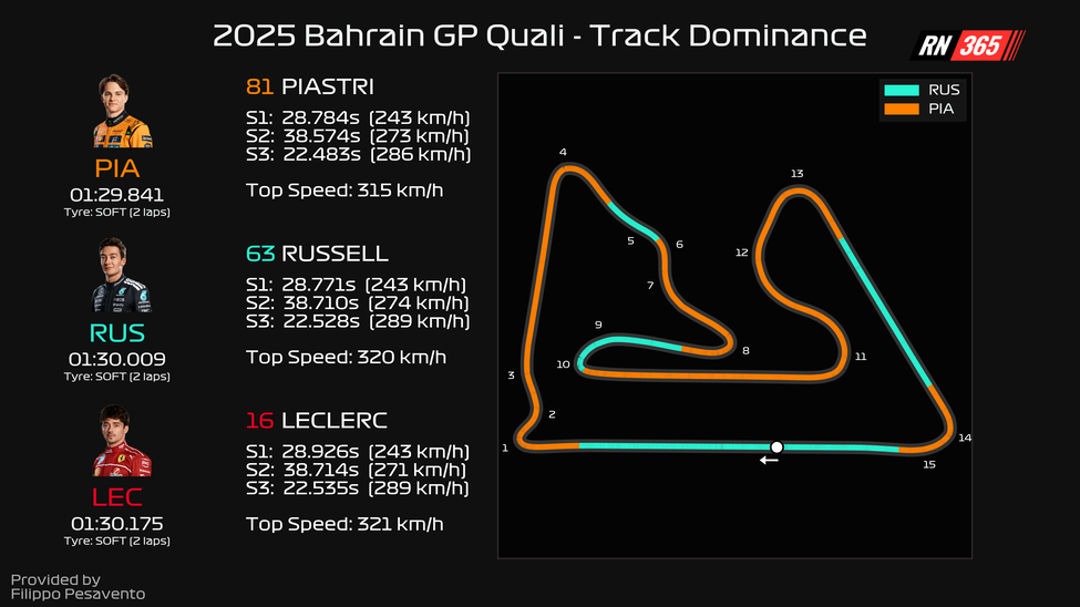 View the comparison between Piastri, Russell and Leclerc below.