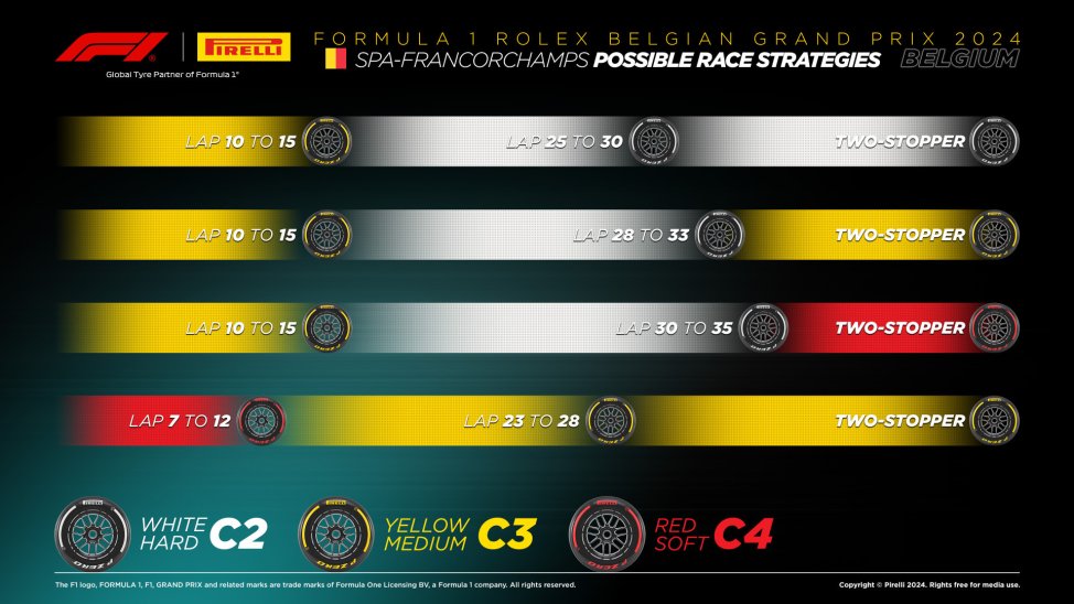 Although not critical to success at Spa-Francorchamps, where there will be overtaking, the soft tyre will provide a considerable advantage off the line at the start, with a clear risk to beginning the race on the hard compound.
