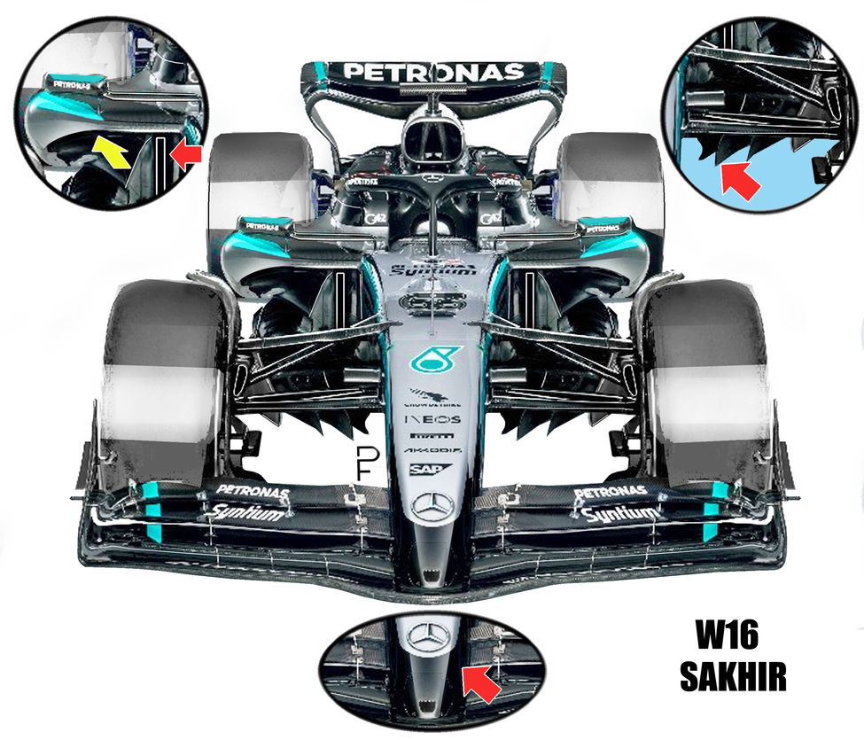 The changes to the front of the Mercedes have been illustrated below.