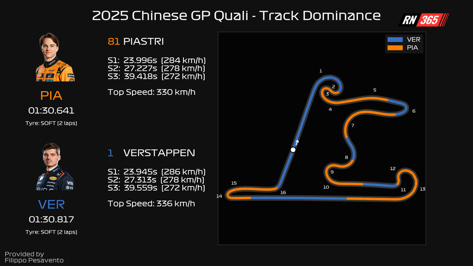 Check out the differences between Verstappen and polesitter Piastri in qualifying below!