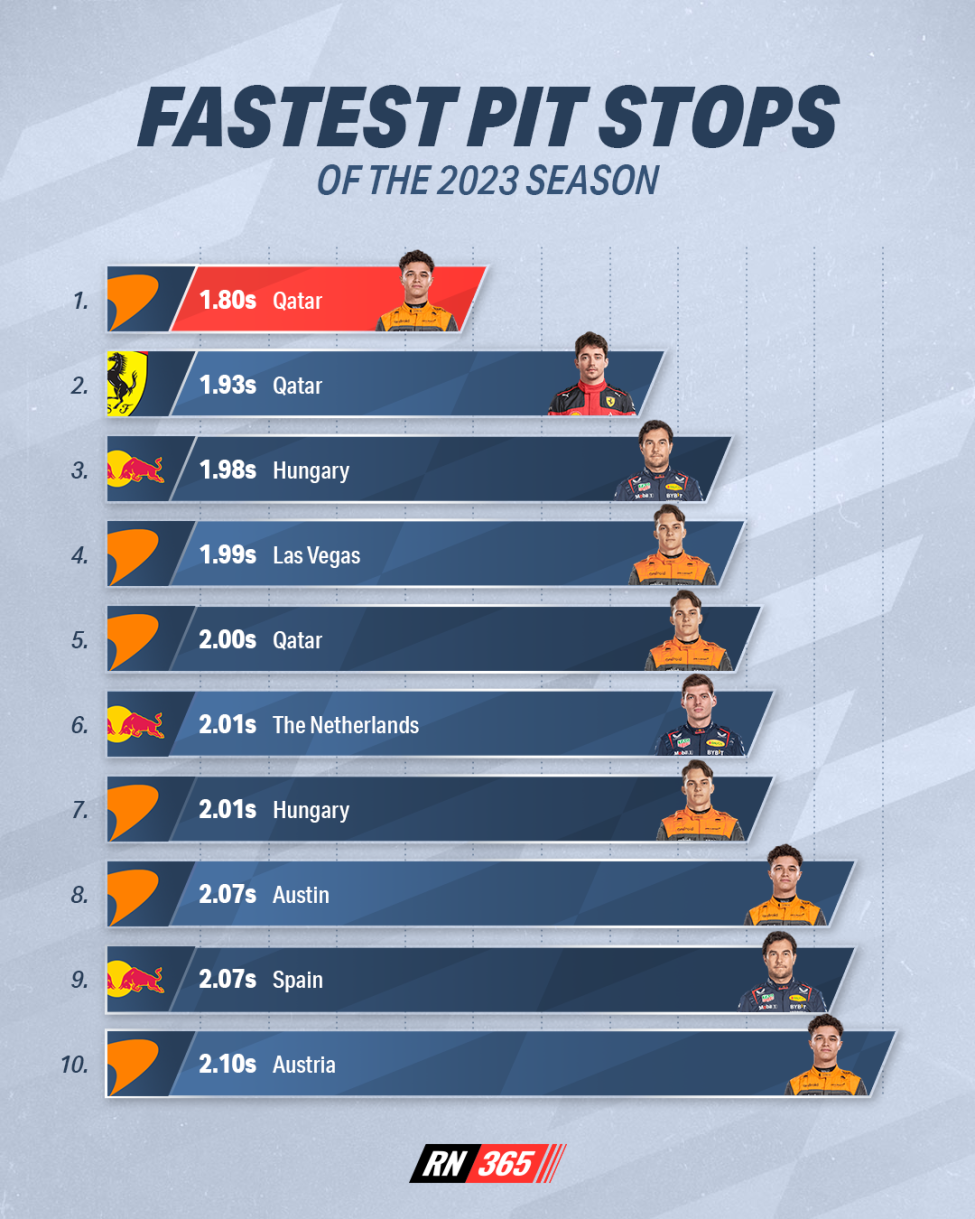 Their quickest pit stop was at the Qatar GP on Lando Norris, achieving a 1.80s stop which beat the world record set by Red Bull at the 2019 Brazilian GP on Max Verstappen.
