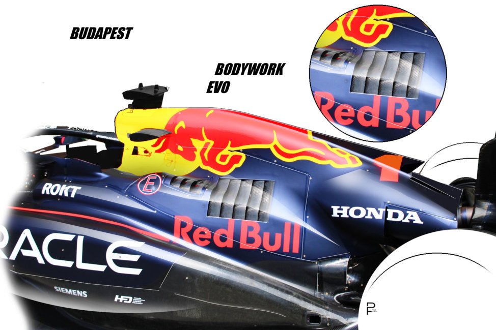 The latest aerodynamic development was introduced in Hungary, with a profoundly modified version of the upper bodywork of the RB20.