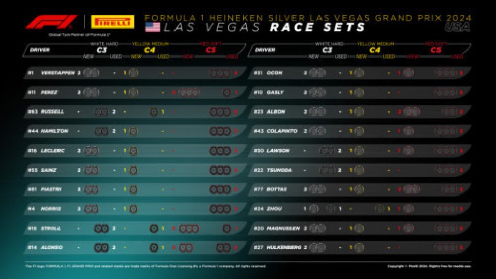 Tyre choice for all concerned, however, is going to be more critical than usual for a race given the cold temperatures by the time the race starts at 10 pm local time and around the low grip Las Vegas Street Circuit.